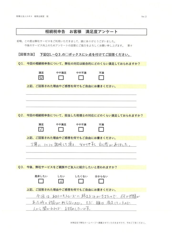 飛び込みにてご依頼したにも関らず、丁寧にご対応いただき、感謝しております。