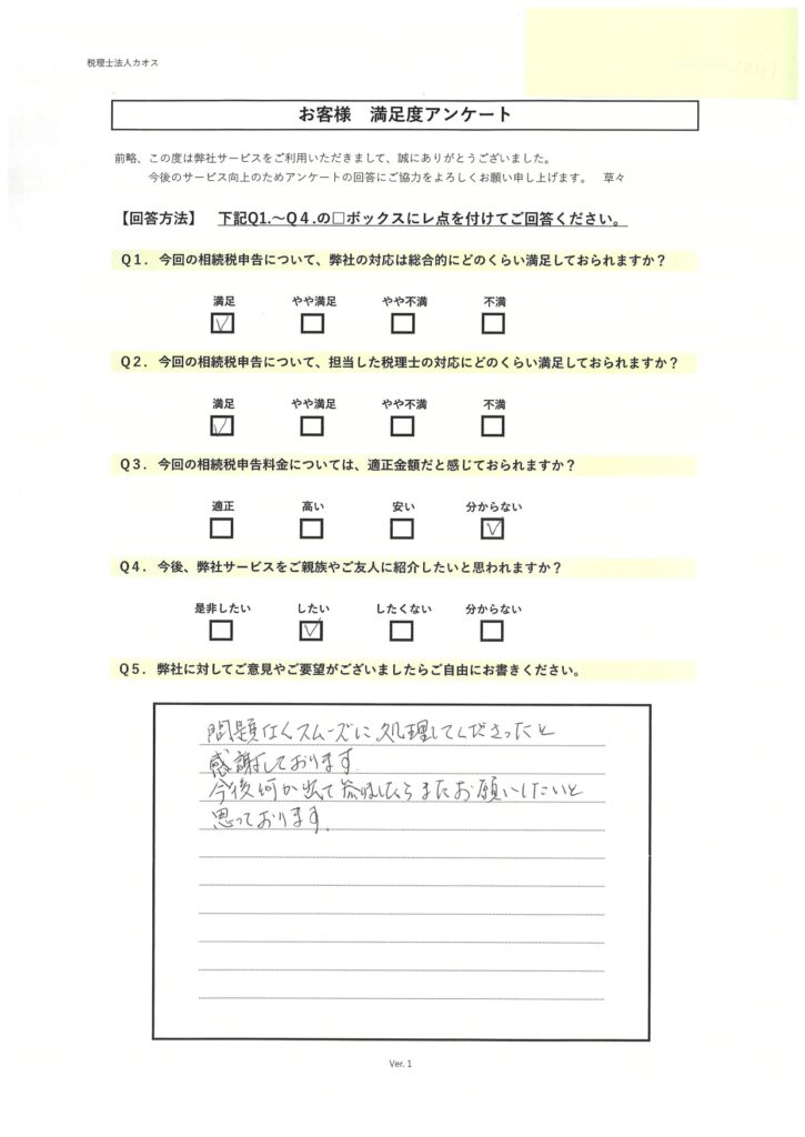 問題なくスムーズに処理してくださったと感謝しております。
